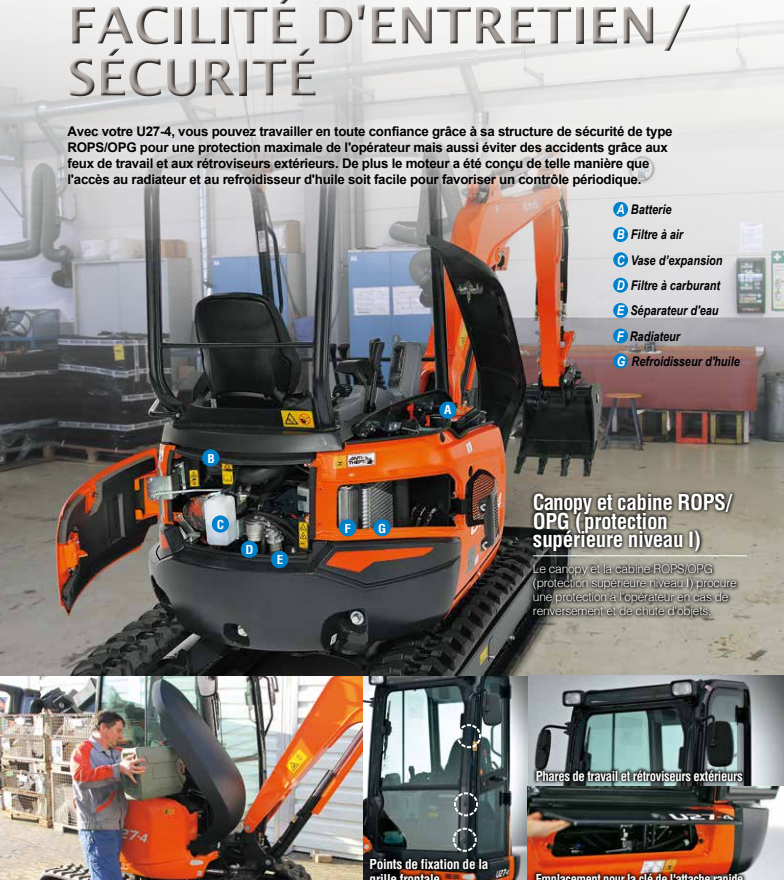 Structure de protection contre le retournement (ROPS) et protection de l’opérateur (OPG, protection supérieure de niveau I ) de série.