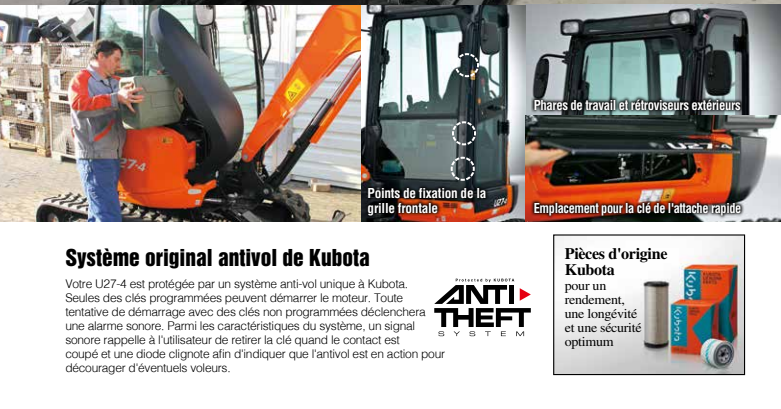 Le système antivol Kubota à la pointe de l’industrie est de série. Seules les clés programmées permettent de démarrer le moteur.