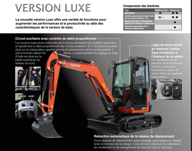 La version Luxe offre deux circuits auxiliaires à commande proportionnelle.