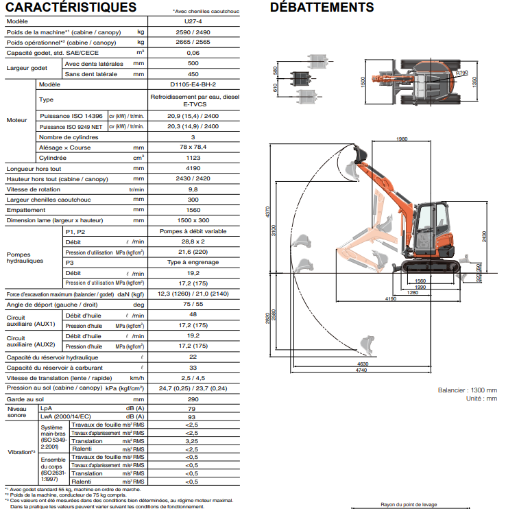 Force d’excavation max, balancier/godet (kN) 4740 4740